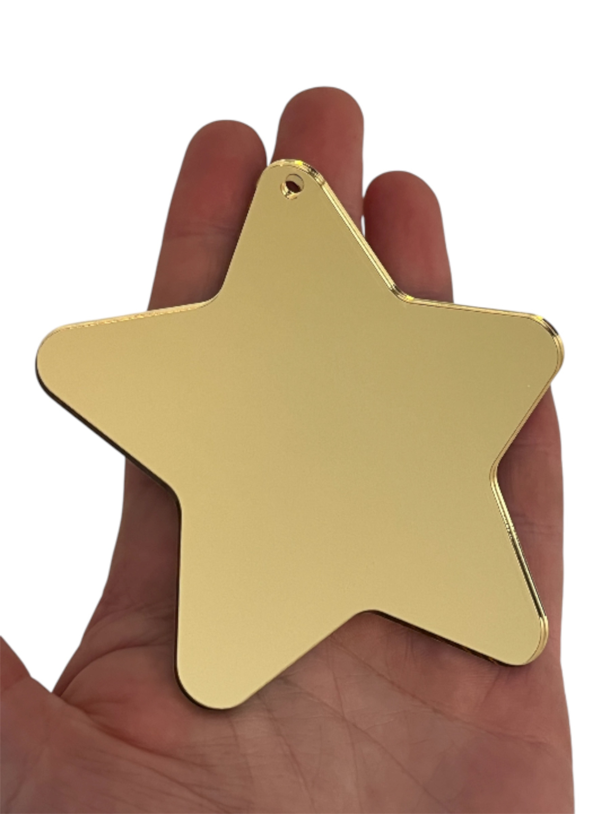 Steluță decorativă elegantă realizată din plexiglass tip oglindă, disponibilă în variante aurie și argintie, perfectă pentru decorurile de Crăciun, evenimente festive sau proiecte handmade.