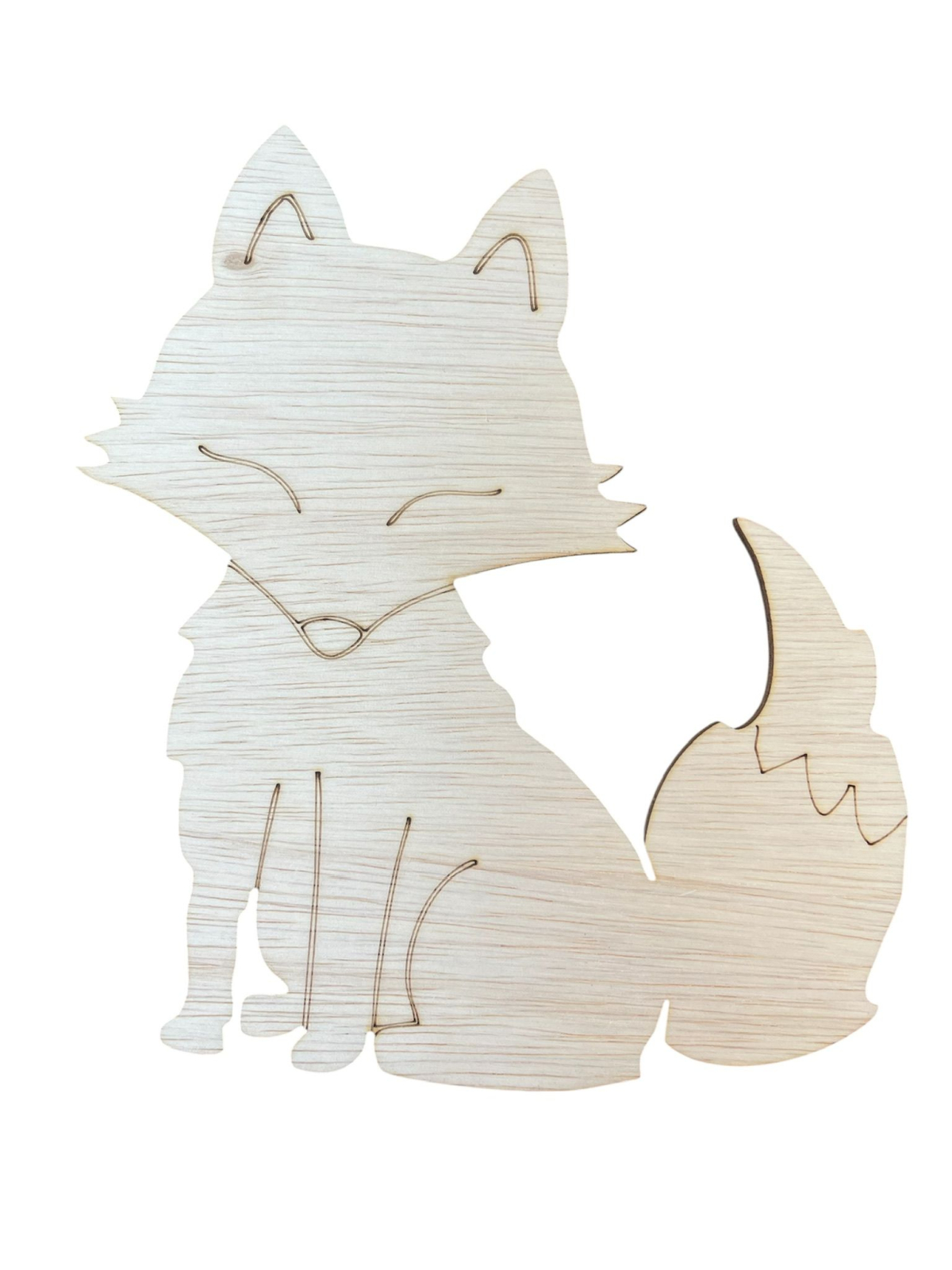 Figurină decorativă realizată din lemn, reprezentând o vulpe șezând, cu un design jucăuș ce sugerează visarea la o gâscă crocantă. Este ideală pentru proiecte creative, pictură și decor personalizat, având un aspect expresiv și plin de umor.