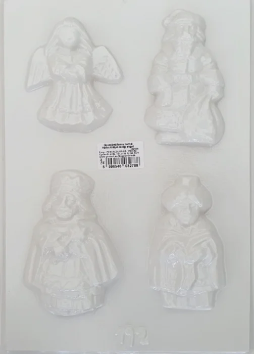 Matrța pentru turnat „Trei Crai și Înger” este ideală pentru realizarea decorurilor tematice de Crăciun și proiectelor creative handmade. Fabricată din material flexibil și rezistent, forma permite turnarea ușoară a ghipsului, rășinii, lutului polimeric sau a altor materiale de modelaj. Detaliile precise ale celor Trei Crai și îngerului oferă rezultate clare și curate, perfect pentru ornamente de brad, figurine, decorațiuni de iarnă, scene de Naștere sau proiecte DIY. Matrita poate fi refolosită de multiple ori, fiind potrivită atât pentru artiști, cât și pentru pasionații de lucru manual.