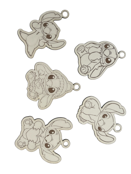 Figurină decorativă inspirată de personajul Stitch, realizată din lemn natural, perfectă pentru proiecte creative și personalizare DIY. Suprafața netedă permite decorarea cu vopsele acrilice, markere, tehnica decoupage sau alte materiale decorative.