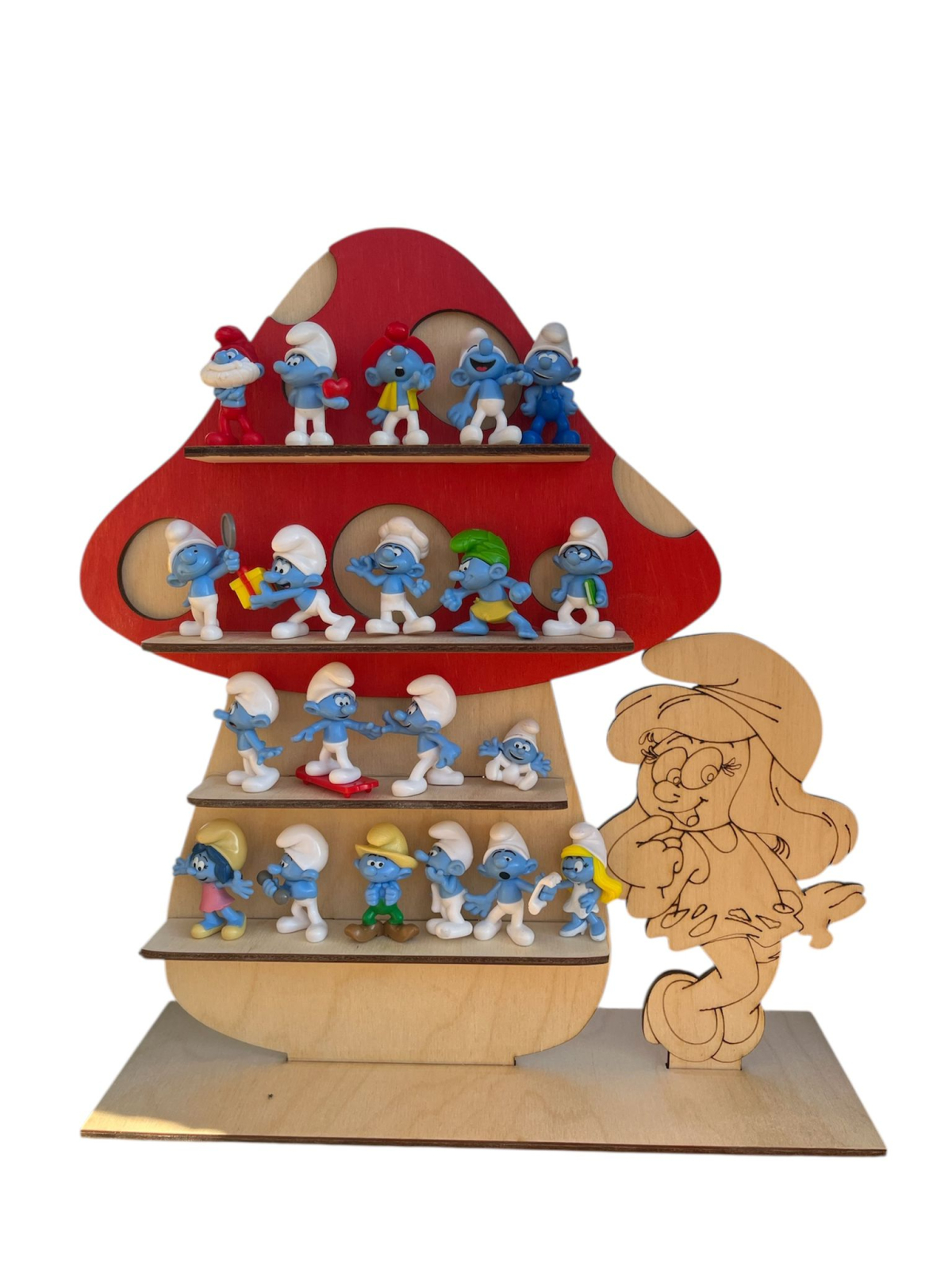 Raft din lemn pentru colecția de Ștrumfi – suport elegant pentru figurinele Kaufland