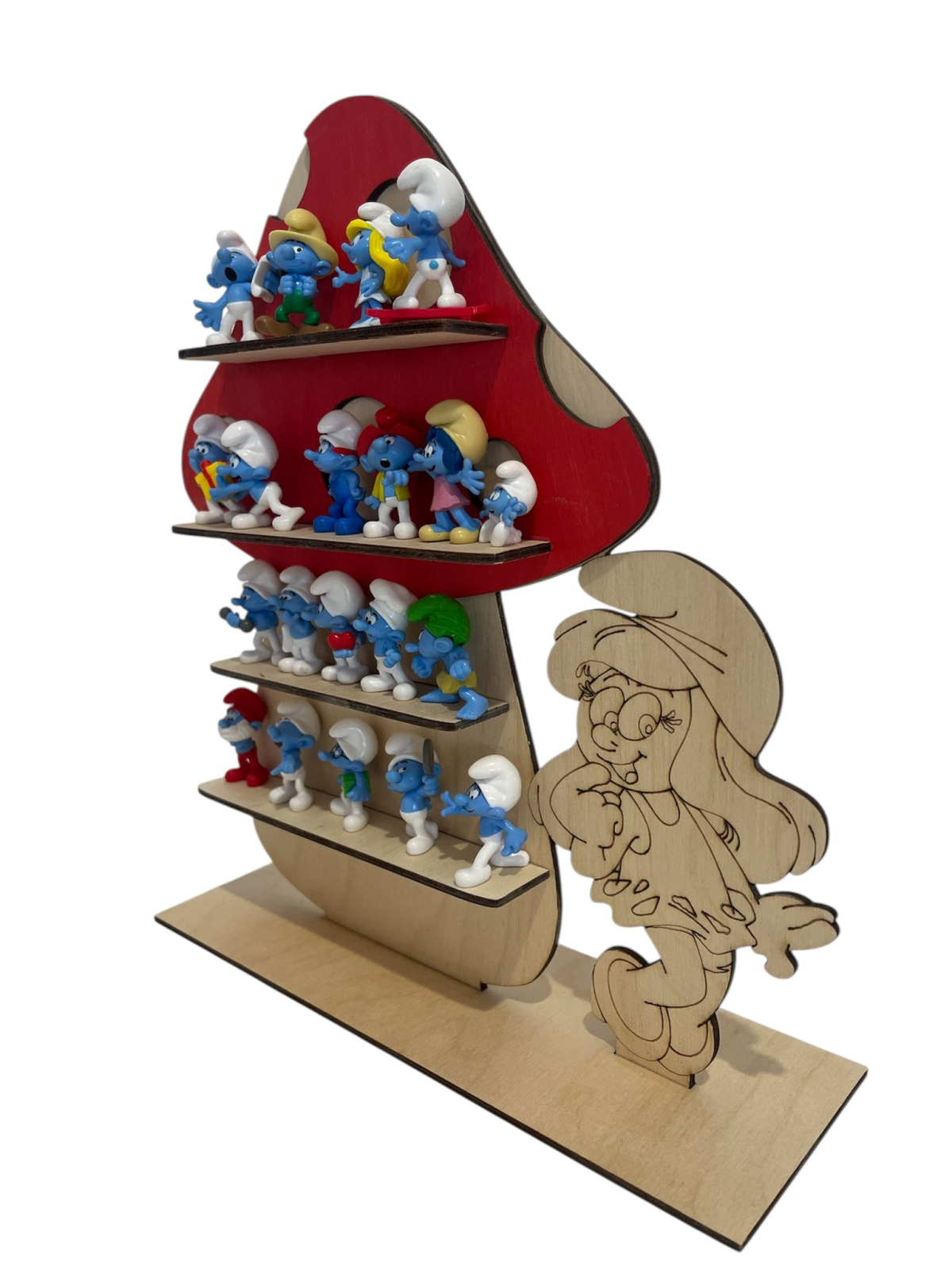 Raft din lemn pentru colecția de Ștrumfi – locul perfect pentru a-ți expune micii eroi albaștri!